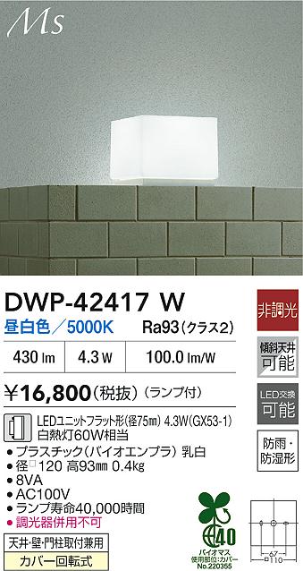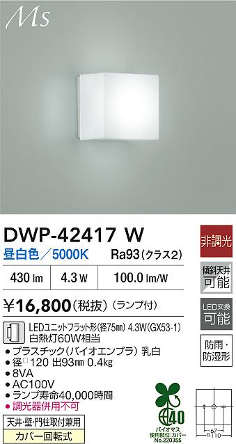 DAIKO Âç¸÷Åŵ¡ LEDÍá¼¼Åô DWP-42417W