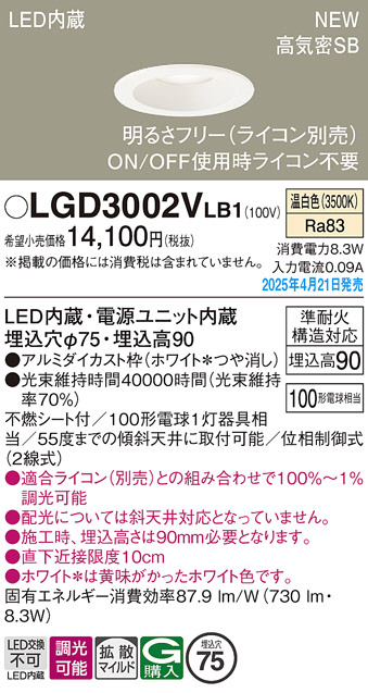 Panasonic ¥À¥¦¥ó¥é¥¤¥È LGD3002VLB1