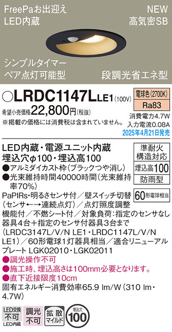 Panasonic ¥¨¥¯¥¹¥Æ¥ê¥¢¥À¥¦¥ó¥é¥¤¥È LRDC1147LLE1