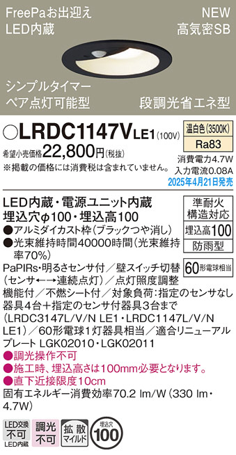 Panasonic ¥¨¥¯¥¹¥Æ¥ê¥¢¥À¥¦¥ó¥é¥¤¥È LRDC1147VLE1