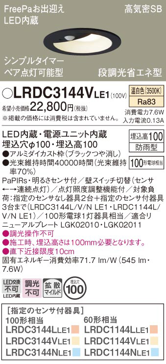 Panasonic ¥¨¥¯¥¹¥Æ¥ê¥¢¥À¥¦¥ó¥é¥¤¥È LRDC3144VLE1