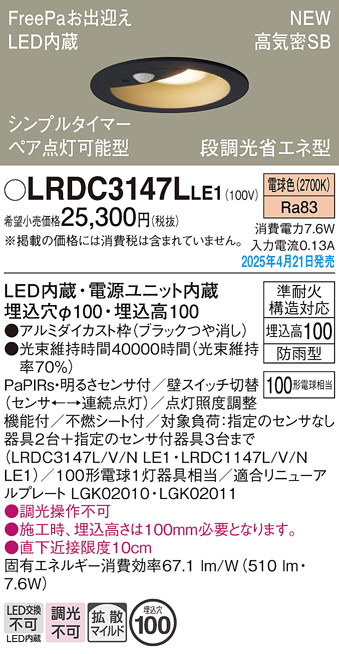 Panasonic ¥¨¥¯¥¹¥Æ¥ê¥¢¥À¥¦¥ó¥é¥¤¥È LRDC3147LLE1