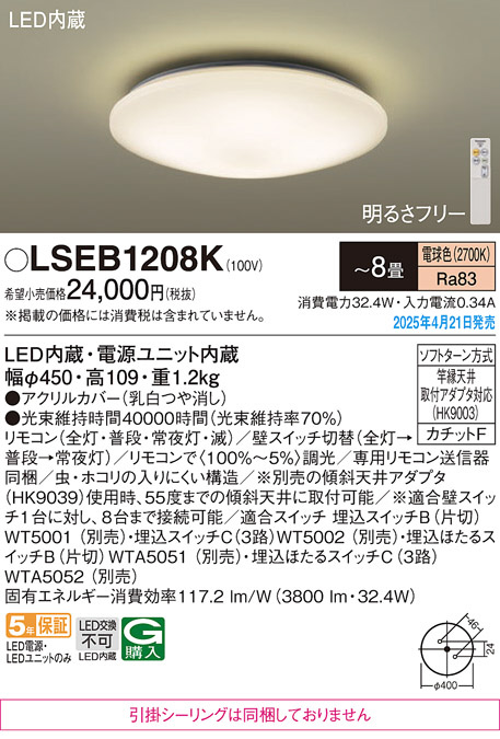 Panasonic ¥·¡¼¥ê¥ó¥°¥é¥¤¥È LSEB1208K