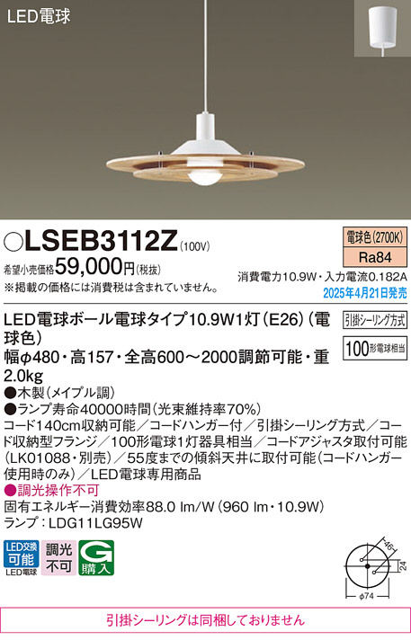 Panasonic ¥Ú¥ó¥À¥ó¥È LSEB3112Z