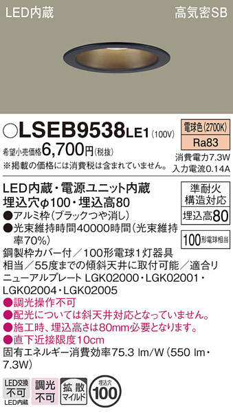 Panasonic ¥À¥¦¥ó¥é¥¤¥È LSEB9538LE1