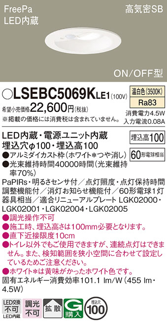 Panasonic ¥À¥¦¥ó¥é¥¤¥È LSEBC5069KLE1