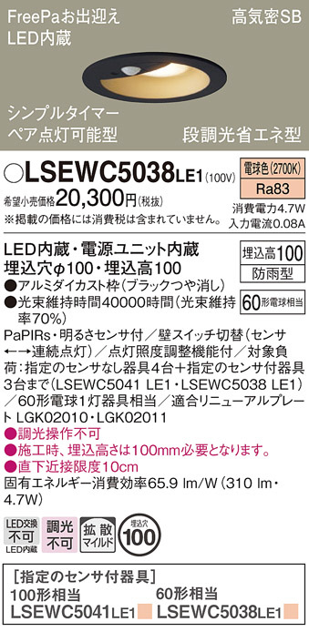 Panasonic ¥¨¥¯¥¹¥Æ¥ê¥¢¥À¥¦¥ó¥é¥¤¥È LSEWC5038LE1