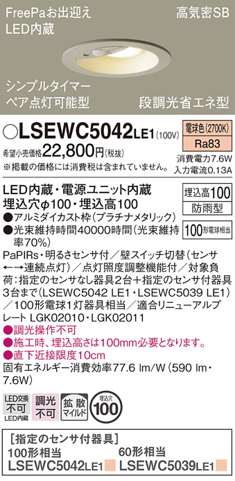 Panasonic ¥¨¥¯¥¹¥Æ¥ê¥¢¥À¥¦¥ó¥é¥¤¥È LSEWC5042LE1