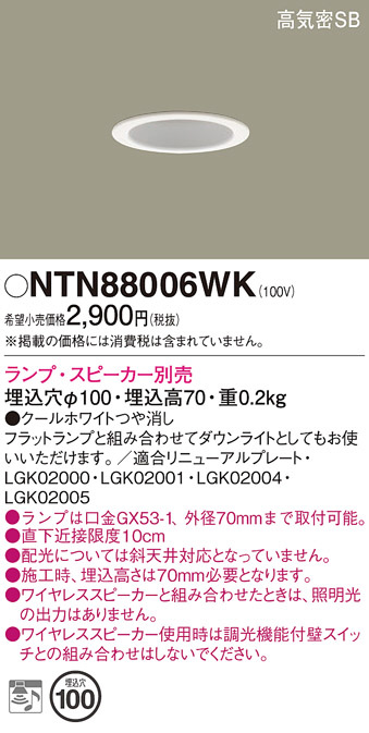 Panasonic ¥À¥¦¥ó¥é¥¤¥È NTN88006WK
