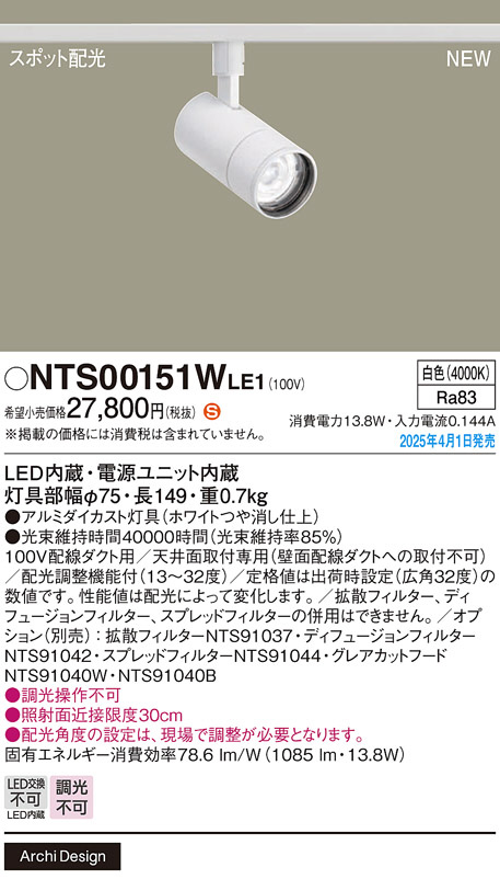 Panasonic ¥¹¥Ý¥Ã¥È¥é¥¤¥È NTS00151WLE1