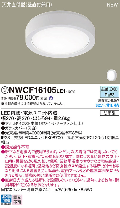 Panasonic ¥·¡¼¥ê¥ó¥°¥é¥¤¥È NWCF16105LE1