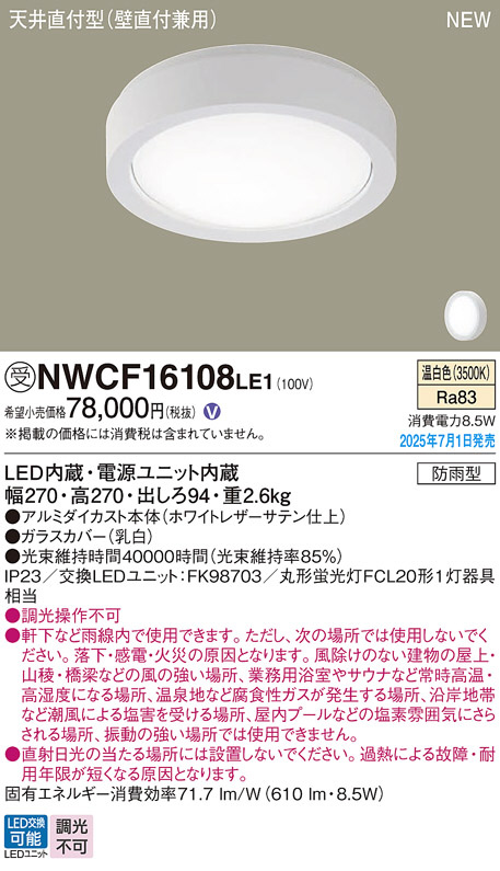 Panasonic ¥·¡¼¥ê¥ó¥°¥é¥¤¥È NWCF16108LE1