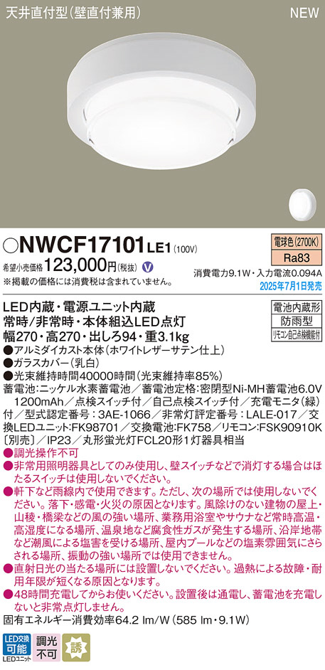 Panasonic ¥·¡¼¥ê¥ó¥°¥é¥¤¥È NWCF17101LE1