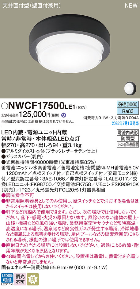 Panasonic ¥·¡¼¥ê¥ó¥°¥é¥¤¥È NWCF17500LE1