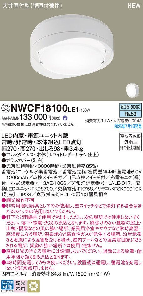Panasonic ¥·¡¼¥ê¥ó¥°¥é¥¤¥È NWCF18100LE1
