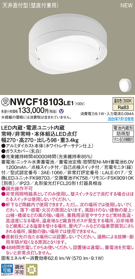 Panasonic ¥·¡¼¥ê¥ó¥°¥é¥¤¥È NWCF18103LE1