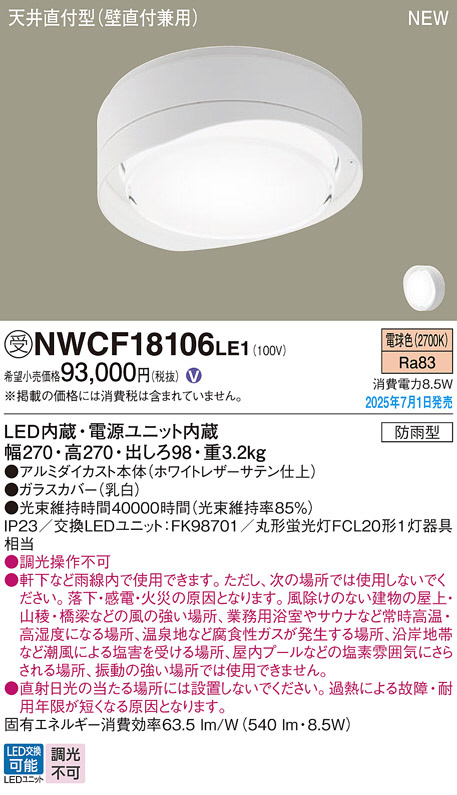 Panasonic ¥·¡¼¥ê¥ó¥°¥é¥¤¥È NWCF18106LE1