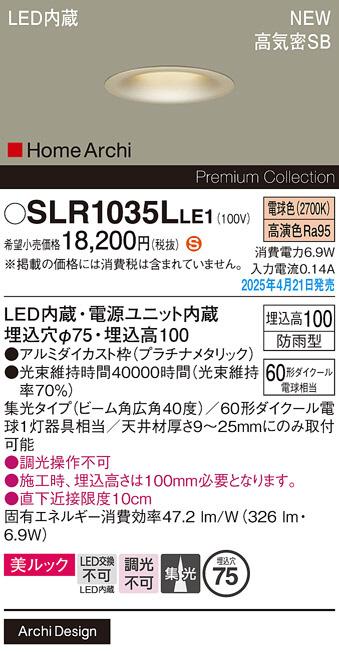 Panasonic ¥¨¥¯¥¹¥Æ¥ê¥¢¥À¥¦¥ó¥é¥¤¥È SLR1035LLE1