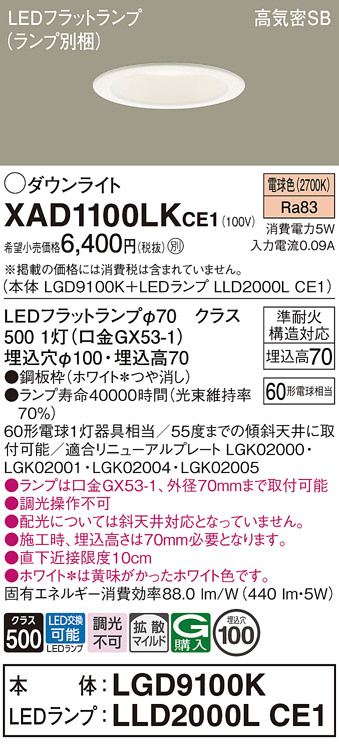 Panasonic ¥À¥¦¥ó¥é¥¤¥È XAD1100LKCE1