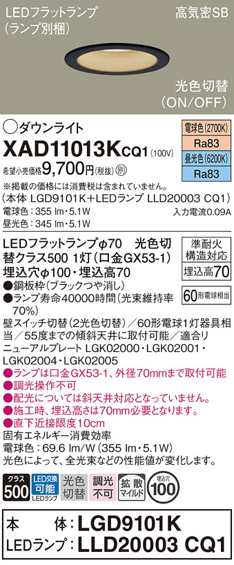 Panasonic ¥À¥¦¥ó¥é¥¤¥È XAD11013KCQ1
