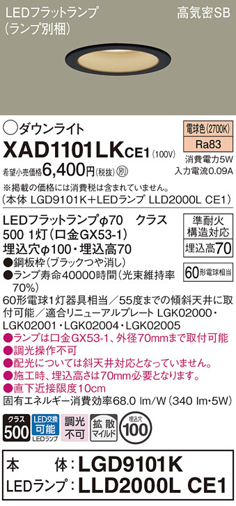Panasonic ¥À¥¦¥ó¥é¥¤¥È XAD1101LKCE1