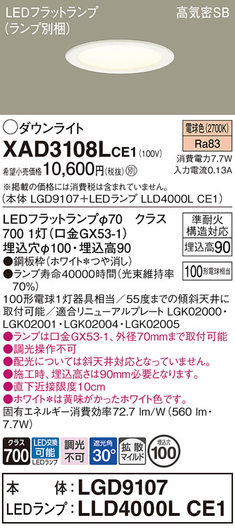 Panasonic ¥À¥¦¥ó¥é¥¤¥È XAD3108LCE1