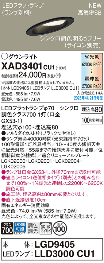 Panasonic ¥À¥¦¥ó¥é¥¤¥È XAD3401CU1