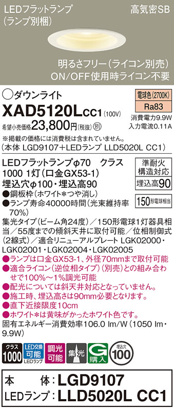 Panasonic ¥À¥¦¥ó¥é¥¤¥È XAD5120LCC1