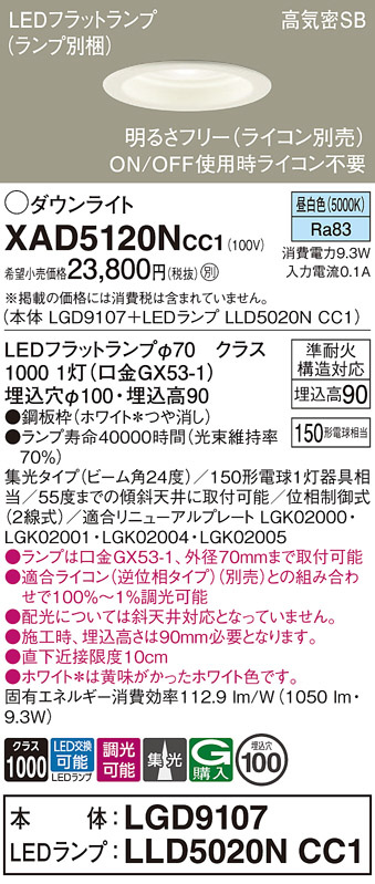 Panasonic ¥À¥¦¥ó¥é¥¤¥È XAD5120NCC1