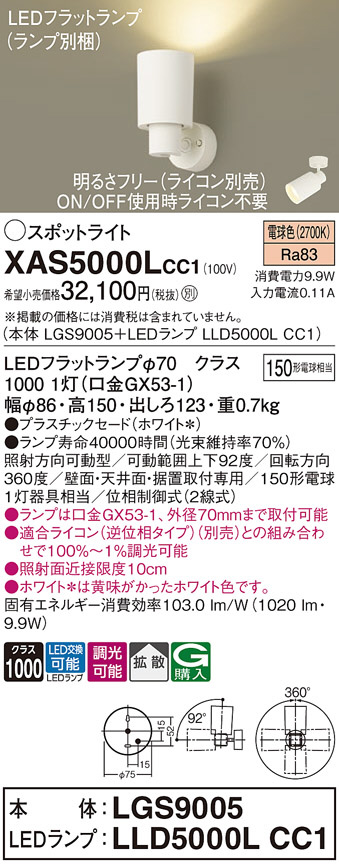 Panasonic ¥¹¥Ý¥Ã¥È¥é¥¤¥È XAS5000LCC1