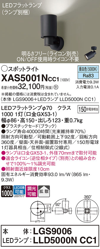 Panasonic ¥¹¥Ý¥Ã¥È¥é¥¤¥È XAS5001NCC1