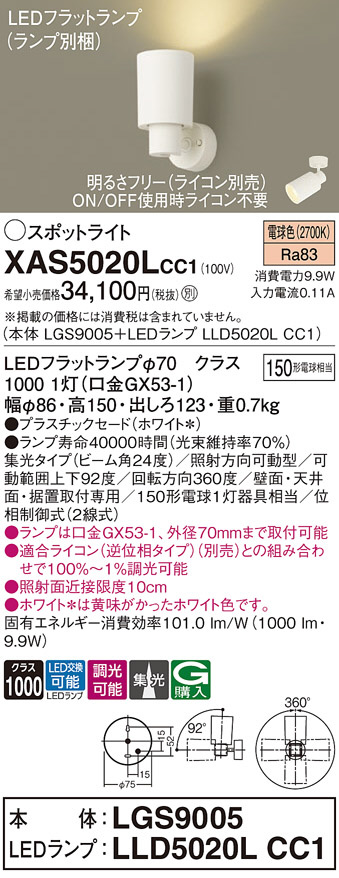 Panasonic ¥¹¥Ý¥Ã¥È¥é¥¤¥È XAS5020LCC1