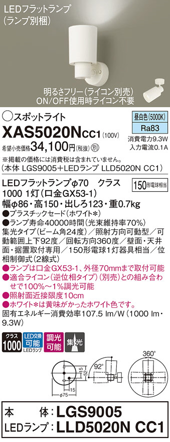 Panasonic ¥¹¥Ý¥Ã¥È¥é¥¤¥È XAS5020NCC1