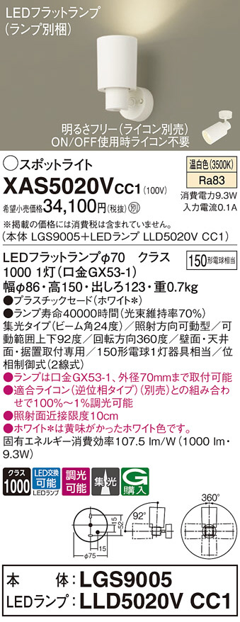 Panasonic ¥¹¥Ý¥Ã¥È¥é¥¤¥È XAS5020VCC1