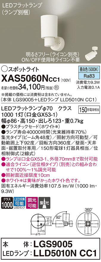 Panasonic ¥¹¥Ý¥Ã¥È¥é¥¤¥È XAS5060NCC1