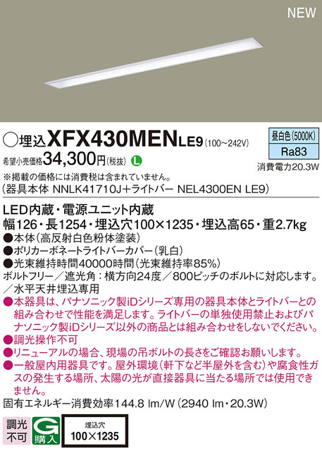Panasonic ¥Ù¡¼¥¹¥é¥¤¥È XFX430MENLE9