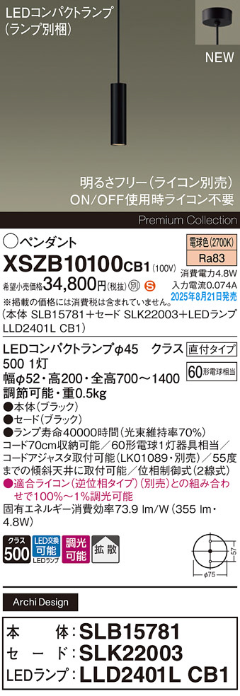 Panasonic ¥Ú¥ó¥À¥ó¥È XSZB10100CB1