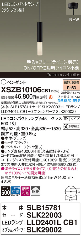 Panasonic ¥Ú¥ó¥À¥ó¥È XSZB10106CB1