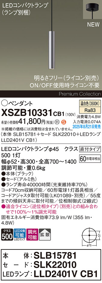 Panasonic ¥Ú¥ó¥À¥ó¥È XSZB10331CB1