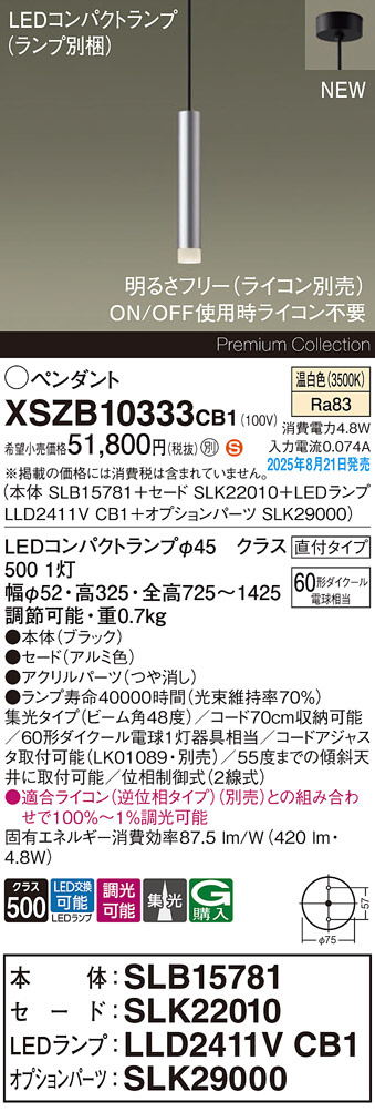 Panasonic ¥Ú¥ó¥À¥ó¥È XSZB10333CB1