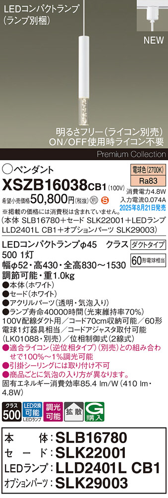 Panasonic ¥Ú¥ó¥À¥ó¥È XSZB16038CB1