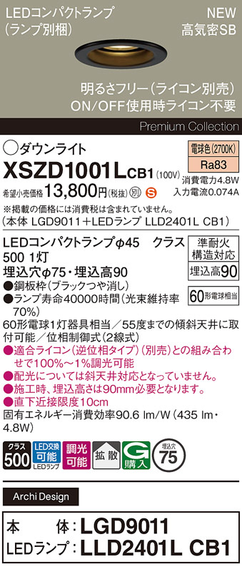 Panasonic ¥À¥¦¥ó¥é¥¤¥È XSZD1001LCB1