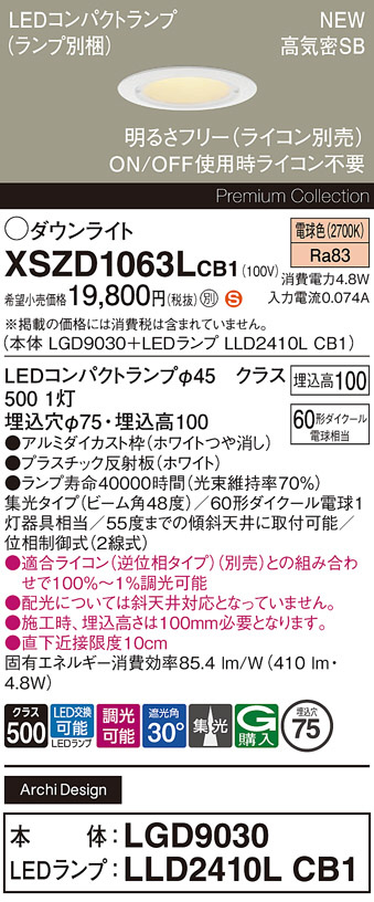 Panasonic ¥À¥¦¥ó¥é¥¤¥È XSZD1063LCB1
