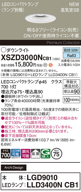 Panasonic ¥À¥¦¥ó¥é¥¤¥È XSZD3000NCB1