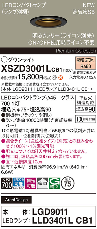 Panasonic ¥À¥¦¥ó¥é¥¤¥È XSZD3001LCB1