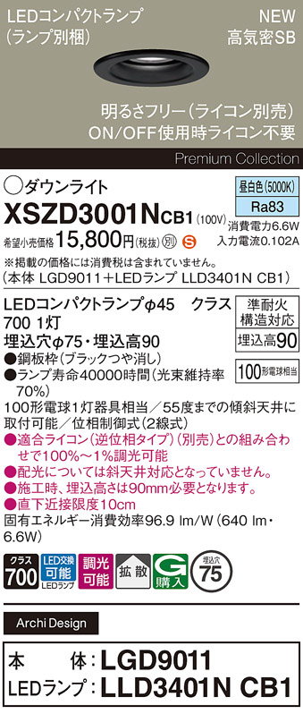 Panasonic ¥À¥¦¥ó¥é¥¤¥È XSZD3001NCB1