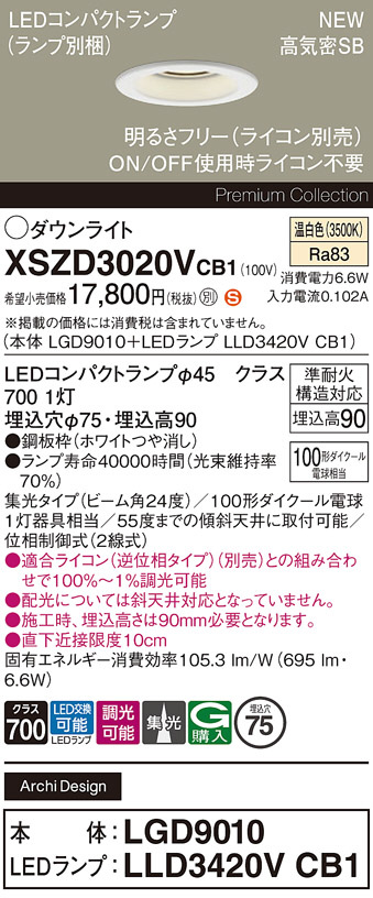 Panasonic ¥À¥¦¥ó¥é¥¤¥È XSZD3020VCB1
