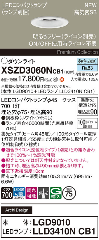 Panasonic ¥À¥¦¥ó¥é¥¤¥È XSZD3060NCB1
