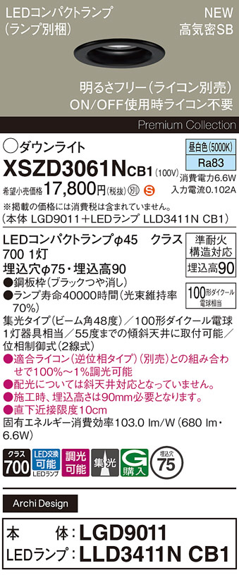 Panasonic ¥À¥¦¥ó¥é¥¤¥È XSZD3061NCB1