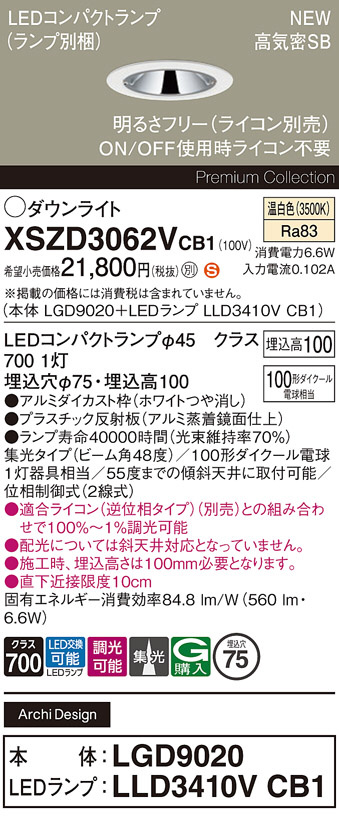 Panasonic ¥À¥¦¥ó¥é¥¤¥È XSZD3062VCB1